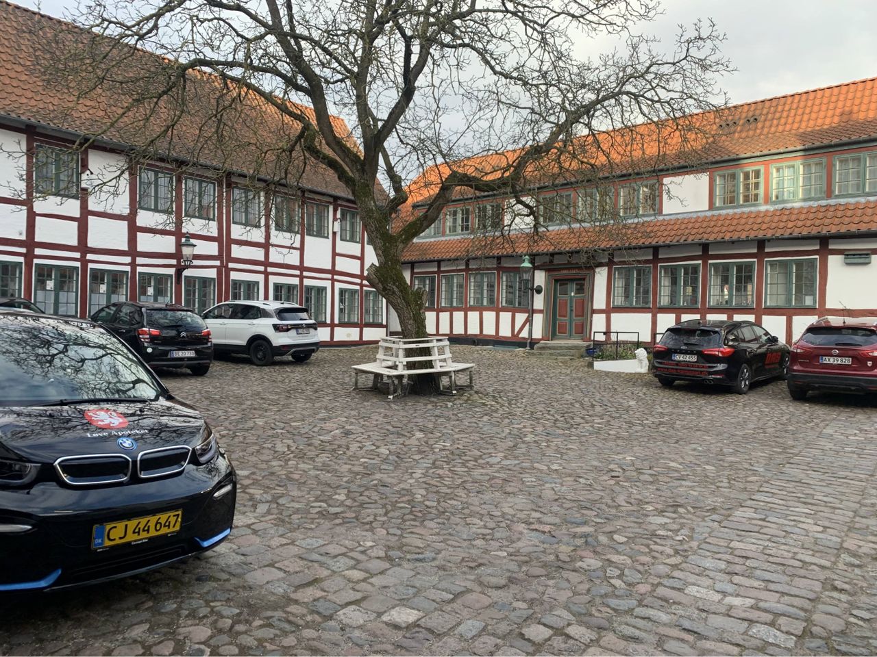 På 1. sal i den gamle Apotekergaard - med indgang fra smøgen ml. Axeltorv og Axelhusparkeringen -