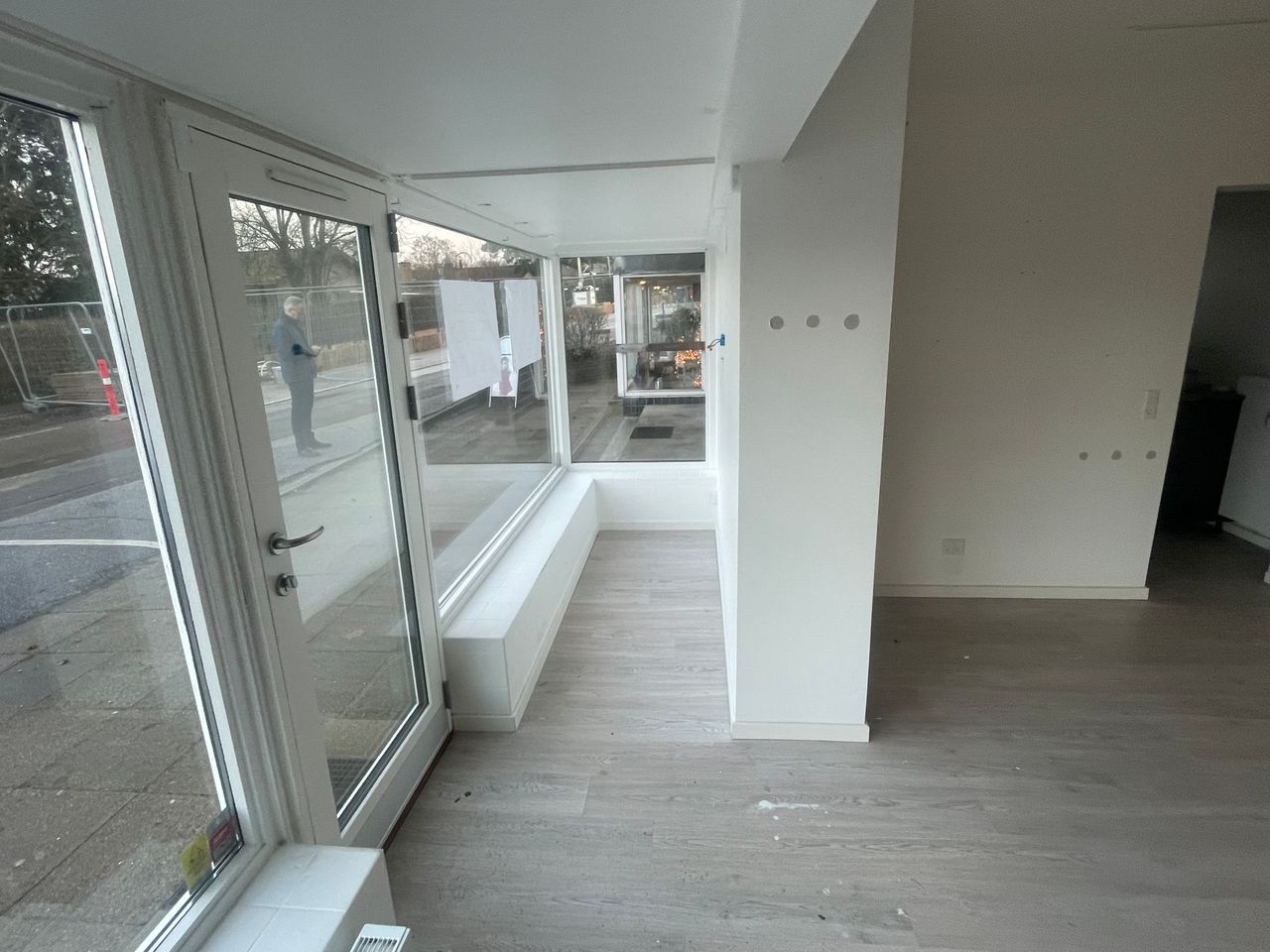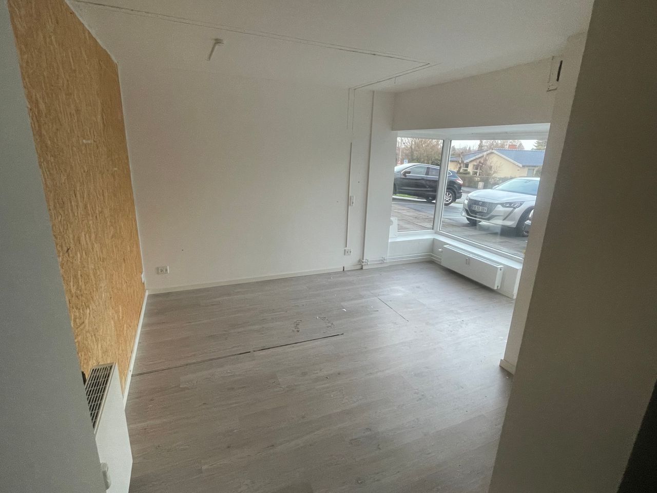 Det forreste lokale har indgang og stort vinduesparti mod gaden (New Yorker-væg og træpanel medtages af fraflyttende lejer).
