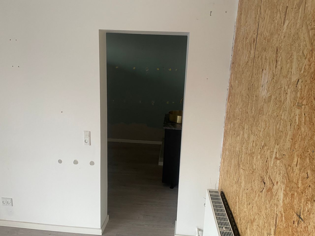 Herfra er der direkte indgang til behandlerlokale med lyse vægge og lofter.
