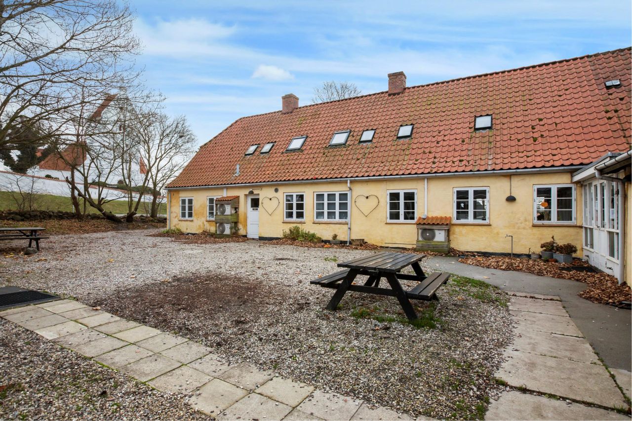 Klassisk landsbyskole opført i 1840 med et samlet etageareal på 476 m².
