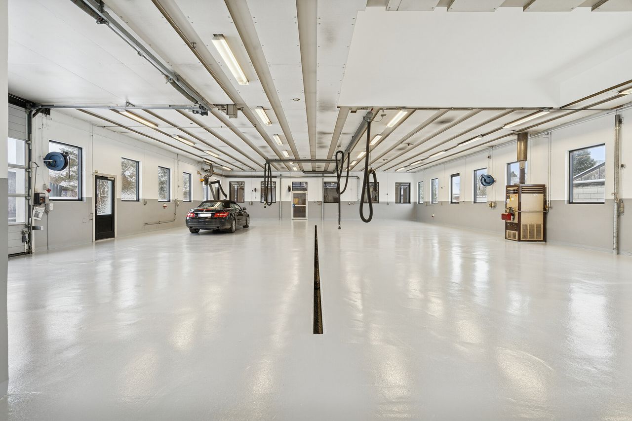 Bygningen udgør i alt 456 m² og fremtræder i pæn og velholdt stand med facader i gasbeton og eternittag. Ejendommen indeholder et stort, regulært værkstedsrum med el-port, epoxymalede gulve samt installeret trykluft og udsugning, hvilket gør ejendommen velegnet til en bred vifte af håndværks- og værkstedsrelaterede formål. Hertil kommer et par disponible lagerrum med gode anvendelsesmuligheder.